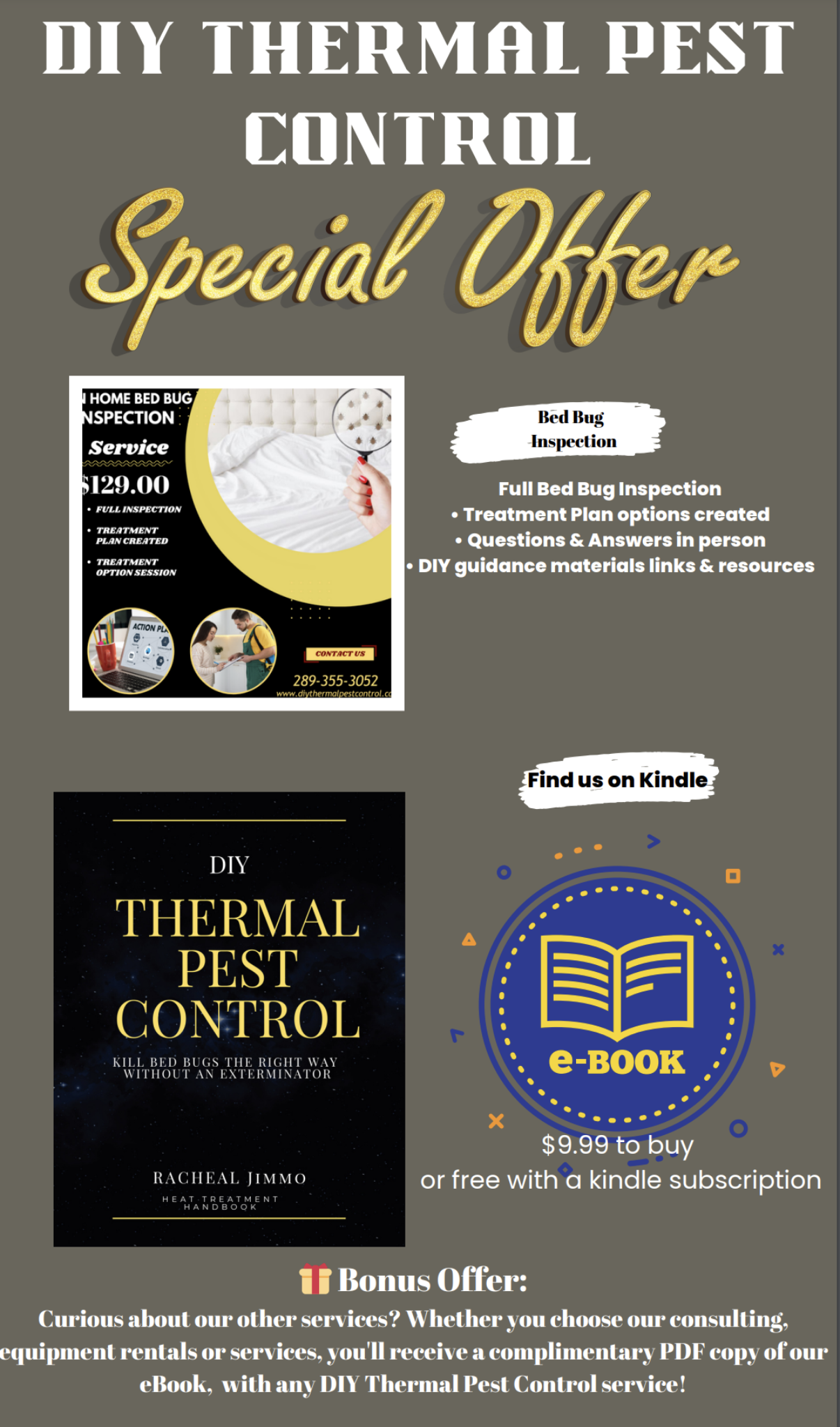 DIY Thermal Pest Control is at the forefront of pest management solutions, offering a unique rental service featuring cutting-edge portable thermal heaters. Our dynamic approach caters to a diverse clientele, including homeowners, businesses, and pest control professionals seeking an efficient and environmentally friendly solution for pest eradication. With three customizable packages – Do-It-Yourself, Assisted DIY, and Full-Service – we empower customers to choose the level of involvement that suits their needs. As an added value, all packages include a complimentary copy of our comprehensive DIY Thermal Pest Control e-book, ensuring clients have the knowledge to complement the effectiveness of our innovative thermal heaters.